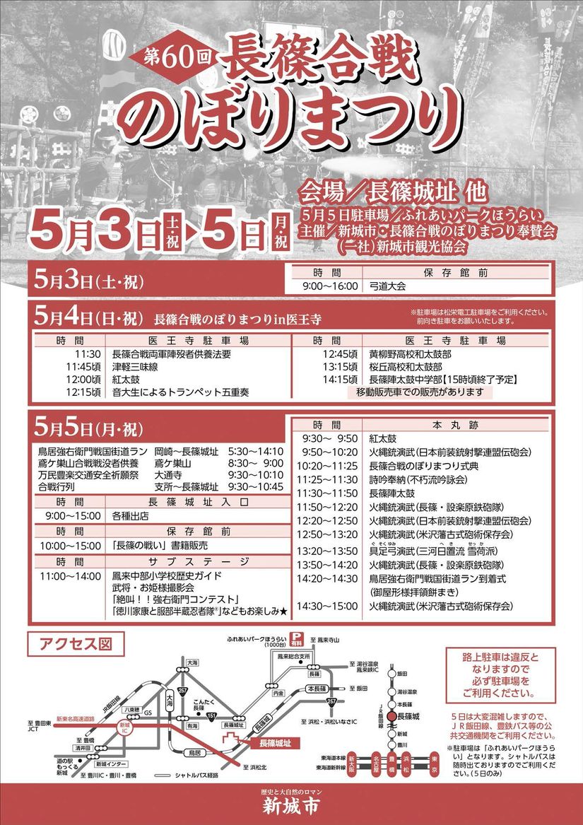 - 主催 新城市・長篠合戦のぼりまつり奉賛会・(一社)新城市観光協会
